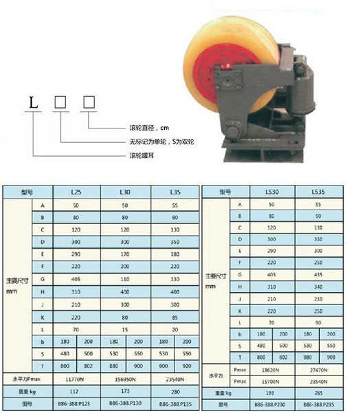 - 滾輪罐耳原理新型滾輪罐耳的工作原理:滾輪通過軸與擺架連接,擺架通過銷軸與支座及緩沖器與復合調(diào)整器連接,緩沖器與復合調(diào)整器4通過銷軸與擺架及支座連接,緩沖器與復合調(diào)整器由殼體Ⅰ和殼體Ⅱ、碟形彈簧、彈簧予緊力調(diào)整螺母、導桿共同組成,通過轉(zhuǎn)動殼體Ⅱ可調(diào)整懸掛長度,從而調(diào)整滾輪位置,用鐵絲可鎖緊殼體Ⅰ、Ⅱ;調(diào)整螺母、調(diào)整工具孔用于插入棒狀工具以使螺紋相對轉(zhuǎn)動;懸掛孔用于與擺架和支座連接。滾輪罐耳以液壓緩沖器取代傳統(tǒng)的緩沖結(jié)構(gòu),承載能力大、運行平穩(wěn)、可靠性高、壽命長、調(diào)整維修方便。 滾輪罐耳底座等零部件采用新型材料,整體結(jié)構(gòu)強度更高,抗沖擊性強。 緩沖器復位壓力小,可有效地避免滾輪與罐道產(chǎn)生異常碰撞。通過杠桿傳遞到減震筒上,同時起到導向、緩沖與穩(wěn)定作用。罐道與罐耳由滑動摩擦變?yōu)闈L動摩擦,因此減少了動力消耗,降低了噪音,罐道和罐耳的磨損也大大降低。從而,提高了罐道和罐耳的使用壽命。滾輪罐耳標準【滾輪罐耳國標標準】MT236-2011(國標):本標準規(guī)定了矩形鋼雄道滾輪罐耳(以下簡稱滾輪罐耳) 的產(chǎn)品分類、技術(shù)要求、試驗方法、檢驗 規(guī)則、標志、包裝、運輸和貯存。 滾輪罐耳本標準適用于立井提升容器(箕斗、罐籠、平衡錘)沿矩形鋼罐道導向的滾輪罐耳。發(fā)布日期:2011-04-12 實施日期:2011-09-01 代替標準:MT236-1991國家安全生產(chǎn)監(jiān)督管理總局公告2011年第13號引用標準:GB/T 700;GB/T 985.1;GB/T 1184-1996;GB/T 1804-2000;GB/T 9286;GB/T 10111;JB/T 5000.3-2007;JB/T 5000.10;JB/T 5000.12-2007;MT/T 154.1;《煤礦安全規(guī)程》 國家安全生產(chǎn)監(jiān)管理總局、國家煤礦監(jiān)察局【滾輪罐耳現(xiàn)場評審必須具備的引用標準】GB/T1972 碟形彈簧GB/T1804 一般公差 未注公差的線性和角度尺寸的公差GB/T1184 形狀和位置公差 未注公差值MT113 煤礦井下用聚合物制品阻燃抗靜電性通用試驗方法和判定規(guī)則熱銷型號:L25滾輪罐耳L25滾輪罐耳-技術(shù)參數(shù):型號: L25預緊力(kg): 300水平最大緩沖力(KN):12緩沖行程(mm): 13使用提升速度(m/s): 8-12L25滾輪罐耳-主要特點:L25滾輪罐耳輪軸采用橡膠密封語機械密封相結(jié)合的組合密封方式,膠圈采用高耐磨材料,安全可靠,壽命長。1.支架擺動銷軸裝有高分子耐磨軸套,使用中不產(chǎn)生松動現(xiàn)象。2.緩沖裝置采用符合彈性體緩沖結(jié)構(gòu),性能穩(wěn)定,免維護。3.可用緩沖裝置來方便的調(diào)整滾輪與罐道間的位置。4.表面防范采用鍍鋅刷漆新工藝,防腐防銹性能好。滾輪罐耳由中間布置一個,左右側(cè)各一個組成一組。滾輪罐耳可根據(jù)用戶要求進行設計。滾輪罐耳-規(guī)格型號滾輪罐耳分為L系列單輪滾輪罐耳和LS雙輪滾輪罐耳。L系列單輪滾輪罐耳型號有:L25,L30,L35,L40,L45;LS系列雙輪滾輪罐耳型號有:LS30,LS35,LS40,LS45。
