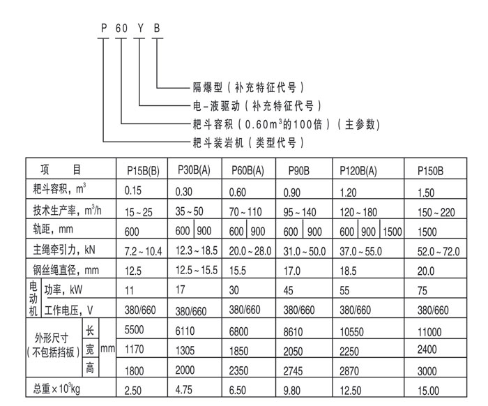- 耙斗機(jī)全稱耙斗裝巖機(jī),又叫耙裝機(jī),耙?guī)r機(jī) 耙斗裝巖機(jī)主要用于煤礦、冶金礦山、隧道等工程巷道掘進(jìn)中配以礦車或箕斗進(jìn)行裝載作業(yè),是提高掘進(jìn)速度,實(shí)現(xiàn)掘進(jìn)機(jī)械化的一種重主要設(shè)備。耙斗裝巖機(jī)是通過絞車的兩個(gè)滾筒分別牽引主繩,尾繩使耙斗做往復(fù)運(yùn)動(dòng)把巖石扒進(jìn)料槽,至卸料槽的卸料口卸入礦車或箕斗內(nèi),從而實(shí)現(xiàn)裝巖作業(yè),耙斗裝巖機(jī)主要有固定楔,尾輪,耙斗,臺(tái)車,絞車,操縱結(jié)構(gòu),導(dǎo)向輪,料槽,進(jìn)料槽,中間槽,卸載槽,電氣部分,風(fēng)動(dòng)推車缸等部件組成。耙斗裝巖機(jī)主機(jī)部分采用行星輪傳動(dòng),該系列P-60B耙斗裝巖機(jī)具有裝巖效率高,結(jié)構(gòu)簡(jiǎn)單,可靠性好,操作方便,適用范圍廣等特點(diǎn)。P-60B耙斗裝巖機(jī)不僅用于平巷,而且可以在30度以下斜巷使用,是提高掘進(jìn)速度,實(shí)現(xiàn)巷道掘進(jìn)機(jī)械化的一種主要機(jī)械設(shè)備。耙斗裝巖機(jī)帶有氣動(dòng)推車缸,礦車裝滿后,可用風(fēng)動(dòng)推車缸將重車推出,以減輕工人的勞動(dòng)強(qiáng)度,縮短調(diào)車時(shí)間,提高掘進(jìn)速度。隧道井巷常用的裝渣機(jī)又稱耙斗裝巖機(jī),現(xiàn)又被挖斗裝載機(jī)[挖斗裝渣機(jī)]所代替。要求外型尺寸矮小,堅(jiān)固耐用,操作方便簡(jiǎn)單,行走自如,生產(chǎn)效率高,連續(xù)不間歇運(yùn)轉(zhuǎn),又要安全環(huán)保。裝渣機(jī)[裝巖機(jī)]的走行方式有輪胎式、軌道式、履帶式三種行走方式。按其裝渣機(jī)的臂斗型式可分為:鏟斗式、蟹爪式、立爪式、挖斗式等四種。因?yàn)殚g歇性不能連續(xù)性,往復(fù)不靈活,工作能力低,不安全造成的灰塵較大,操作不人性化,巖石塊度要求小,坡度又受限等缺陷,前三種都在施工實(shí)踐中慢慢被挖斗式所淘汰取代。P-60B耙斗裝巖機(jī)適用于凈高2米以上(凈斷面4.5平方米以上)的巷道選用。P-15B耙斗裝巖機(jī)適用于水平和傾斜角小于35度的斜井上山及90度拐角巷道中裝載。P-60B耙斗裝巖機(jī)適用于各種金屬礦、非金屬礦、煤礦、鐵路涵洞、水利等建設(shè)工程在巷道掘進(jìn)中配備礦車或箕斗進(jìn)行裝巖作業(yè)。它不僅可以在平巷中使用,而且可以在傾角小于30度的斜巷或拐彎及拐彎角度達(dá)到90度的巷道中使用,并且還能同時(shí)進(jìn)行掘進(jìn)工序的平行作業(yè),提高掘進(jìn)速度。電氣設(shè)備具有防爆性能,可用于有煤塵及瓦斯的礦井中。P系列耙斗裝巖機(jī)適用于各種金屬礦、非金屬礦、煤礦、鐵路涵洞、水利等建設(shè)工程在巷道掘進(jìn)中配備礦車或箕斗進(jìn)行裝巖作業(yè)。P-60B耙斗裝巖機(jī)不僅可以在平巷中使用,而且可以在傾角小于30度的斜巷或拐彎及拐彎角度達(dá)到90度的巷道中使用,并且還能同時(shí)進(jìn)行掘進(jìn)工序的平行作業(yè),提高掘進(jìn)速度。電氣設(shè)備具有防爆性能,可用于有煤塵及瓦斯的礦井中。P型耙斗裝巖機(jī)的基礎(chǔ)參數(shù):P-15B耙斗裝巖機(jī)適用于凈高2米以上( 凈斷面4.5平方米以上 )的巷道選用。P-30B耙斗裝巖機(jī)適用于凈高2米以上( 凈斷面6平方米以上 )的巷道選用。P-60B耙斗裝巖機(jī)適用于凈高2.4米以上( 凈斷面8平方米以上 )的巷道選用。P-90B耙斗裝巖機(jī)適用于凈高3米以上( 凈斷面12平方米以上 )的巷道選用。P-120B耙斗裝巖機(jī)可適用于凈高3米以上( 凈斷面16平方米以上 )的巷道選用P-60B耙斗裝巖機(jī)工作原理及結(jié)構(gòu)概述耙斗裝巖機(jī)是通過絞車的兩個(gè)滾筒分別牽引主繩、尾繩使耙斗往復(fù)運(yùn)動(dòng)把巖石扒進(jìn)料槽,至卸料槽的卸料口卸入礦車或箕斗內(nèi),從而實(shí)現(xiàn)裝巖作業(yè)。耙斗裝巖機(jī)帶有調(diào)車盤,調(diào)車盤類似鋼板結(jié)構(gòu)的移動(dòng)式道岔,由調(diào)車盤本體、牽引空礦車用的風(fēng)動(dòng)調(diào)車絞車、空車推車風(fēng)缸、重車推車風(fēng)缸及風(fēng)動(dòng)操縱系統(tǒng)組成,主機(jī)與調(diào)車盤之間用鉸鏈連接。耙斗裝巖機(jī)帶有風(fēng)動(dòng)推車系統(tǒng),在平巷作業(yè)時(shí)用來推出重礦車。該系列耙斗裝巖機(jī)主要由固定楔、尾輪、耙斗、臺(tái)車、絞車、操縱機(jī)構(gòu)、導(dǎo)向輪、料槽(進(jìn)料槽、中間槽、卸載槽)、電氣部分,帶有風(fēng)動(dòng)推車缸,D型帶有調(diào)車盤等部件組成。各主要部件的功能和結(jié)構(gòu)簡(jiǎn)述如下:1 固定楔:固定在迎頭上,用以懸掛尾輪,固定楔由一個(gè)緊楔和一個(gè)楔部帶錐套的鋼絲繩套環(huán)組成。2 尾輪:掛在固定楔上用以引導(dǎo)尾繩,使耙斗返回迎頭,它主要由側(cè)板、繩輪、心軸、吊勾等主要零件組成。3 耙斗:在主繩、尾繩的牽引下作往復(fù)運(yùn)動(dòng)來扒取巖石,可用于平巷和傾斜巷道。耙齒磨損后可調(diào)換。4 操縱機(jī)構(gòu):由兩組操縱桿、拉桿、連桿、調(diào)整螺桿等組成。調(diào)整螺桿的一端與絞車閘帶相連,通過操縱桿控制閘帶的開合,對(duì)絞車的兩個(gè)滾筒分別進(jìn)行操縱。操作桿可安裝在絞車的左、右任一側(cè)進(jìn)行操縱。5 絞車:由電動(dòng)機(jī)、減速器以及兩個(gè)行星傳動(dòng)滾筒及兩組制動(dòng)
