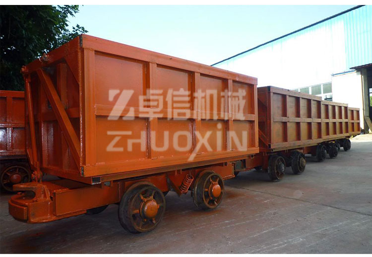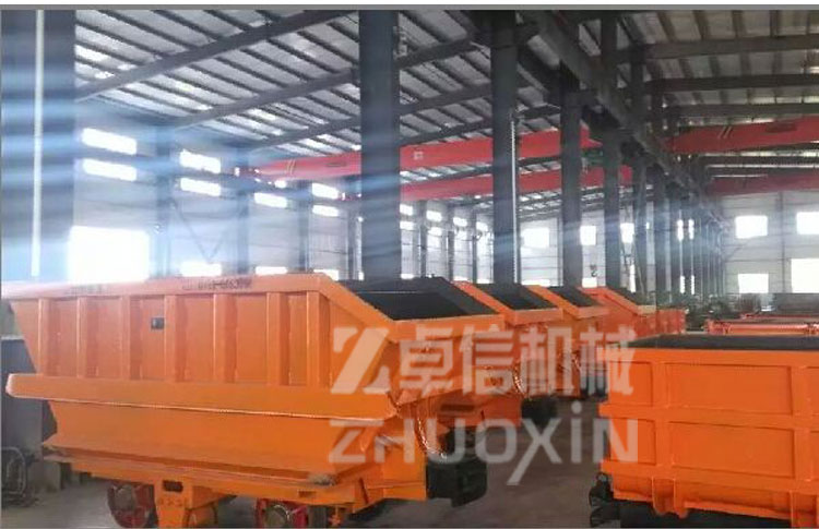 - 側(cè)卸式礦車主要適用于冶金、礦山巷道、煤礦、鐵路、公路遂道、水下涵洞、引水洞、導流洞、涵洞等隧道井巷工程掘進、施工、配套簡單、高效率出渣運輸設(shè)備。側(cè)卸式礦車由牽引車、絞車帶動,可與鑿巖鉆、立爪裝巖機和礦石溜開閘門放料系統(tǒng)配套結(jié)合裝料,礦石塊度不超過600毫米,根據(jù)礦車的負載容積,裝料后經(jīng)牽引動力引至(運行速度不超過1m/秒)專用曲軌卸料器。當車箱翻至水平成最大卸料角度時,車門也開到最大程序。這時礦車卸料以全部完成。返回時,礦車通過曲軌門又自動關(guān)閉到位。側(cè)卸式礦車、曲軌側(cè)卸式礦車、側(cè)翻式礦車容量有2立方、3立方、4立方、6立方、8立方的容積。側(cè)卸式礦車是一種高效、自卸載的運輸設(shè)備,本身無能力,需與牽引機車或提升絞車配套使用。該車適用于礦山、隧道、工程建設(shè)等部門的坑道、室內(nèi)和露天軌道運輸作業(yè),軌距為600mm、762mm、900mm三種,供用戶選擇。該車適宜裝載塊度在500mm以上的礦巖和砂土,裝載塊狀物料時,其自由跌落高度應小于1m(距車箱頂面)。側(cè)卸式礦車是代替最古老式的翻斗式礦車的礦山運輸工具,它綜合了它的簡單又方便,加大了它的貯存量,重量輕不笨重交靈活,簡單也就毛病少,特點是能自卸料。由軌道牽引機車或卷揚機牽引行走,只能在卸載處做好的曲軌卸載平臺上,向設(shè)定的一面卸載。在車廂的一側(cè)用較軸與車架相連,另一側(cè)箱門上裝有卸載輥輪。卸載時,當輥輪沿曲軌斜坡過渡裝置在卸載曲軌上坡段的上行,致使車廂傾斜,活動側(cè)門繞銷軸轉(zhuǎn)動被拉開而開始卸載。當輥輪沿傾斜卸載曲軌下坡運行,車廂靠自生重量自動下降復位到關(guān)閉側(cè)門。要注意的是當側(cè)曲軌側(cè)卸式礦車從井底提升到卸載平臺時,提升卷揚機要放慢速度上斜坡卸載平臺,使其平穩(wěn)卸載。中煤集團生產(chǎn)的單側(cè)曲軌側(cè)卸式礦車的優(yōu)點是比翻斗式礦車和固定式礦車容積更大,自動平穩(wěn)卸載,由于這種卸載方式自身的特點,曲軌卸載空間小,一般只要5.2米長,卸載傾角 仍可達到55度,有效的節(jié)省了井巷的開拓空間和縮小了硐室尺寸。卸載距離短,煤倉和車場的掘進體積只有其它礦車的三分之一;由于卸載曲軌是對稱的,可實現(xiàn)側(cè)卸式礦車的雙向進行卸載。側(cè)卸式礦車適用范圍側(cè)卸式礦車適用于井下或地面開采的金屬礦山(或礦石性質(zhì)及開采方式與其相類似的其他礦山)沿地下巷道及地面工作場地運輸?shù)V石或其他物類。本礦車與其它底卸式礦車相比,具有運行平穩(wěn),對電機車和牽引車沖擊力小,因此,可延長其使用壽命。該車堅固耐用,維修方便,可雙向卸載,卸載速度高等。側(cè)卸式礦車結(jié)構(gòu)組成側(cè)卸式礦車有以下部件組成:1.車箱、2.車底架、3.輪軸、4.卸載輪、5.支撐彈簧、6.緩沖橡膠彈簧與碰頭等組成。其中車箱與車底架的聯(lián)接采用鉸鏈形式,使礦車在過卸載站時能開啟一定的角度以便礦石能順利卸下。31、車箱的前、后端板和側(cè)板均采用12mm厚的16Mn板焊接而成,在車箱四周外側(cè)采用槽形鋼板加固;翼板分別焊接在左、右側(cè)板上,上方用角鋼焊接成口字形,而且角鋼上方 和槽形鋼板相連,以便能使車箱在極端惡劣的工作環(huán)境下也不致于損壞。2、車底架。底板采用25mm厚的鋼板,在底板下面用角鋼和鋼板焊接,使底板足以能經(jīng)受住裝礦時礦石對底板的沖擊力。3、輪軸。輪軸由車軸、車輪和橡膠彈簧座組成。4、卸載輪。礦車卸礦時用,當?shù)V車過卸載站時,卸載輪便開始工作,它沿曲軌滾動從而使礦車底板打開,卸完礦石后再使底板閉合,重新回復到裝礦狀態(tài)。5、緩沖橡膠彈簧與碰頭。緩沖與碰頭安裝在礦車兩頭,主要由緩沖橡膠彈簧、碰頭、插銷和單環(huán)鏈組成。它能使礦車之間緩和并削減沖擊力,延長車輛使用壽命。6、支撐彈簧。側(cè)卸式礦車相關(guān)參數(shù)容積:1.6m3軌距:600軸距:800C輪徑:350D牽引高度:320h額定牽引力:60KN卸載角:≥42°裝載量:4000KG外型尺寸:(長*寬*高)2500*1200*1300。側(cè)卸式礦車售后服務(wù)及交付說明1、側(cè)卸式礦車性價比說明:同產(chǎn)品質(zhì)量條件下,我公司不以降低性能、更改產(chǎn)品零部件為代價,給出最低最實在的價格。(可根據(jù)客戶要求進行產(chǎn)品的生產(chǎn)配置)2、側(cè)卸式礦車交貨說明:按供貨期交貨,若有特殊情況,需提前交貨的,我公司在有限的范圍內(nèi)將會組織人員加大生產(chǎn)力度、實行生產(chǎn),安裝,調(diào)試,包裝等工藝,力求滿足貴公司要求.3.側(cè)卸式礦車售后服務(wù)范圍:產(chǎn)品保修期為1年,在保修期內(nèi)產(chǎn)品屬質(zhì)量問題的我公司給予最快捷的維修,無任何費用,在保修期外需要更換零部件的,我公司只收取成本.山東卓信機械(官網(wǎng)http://www.jnzhuoxin.com)秉承山東人的豪爽與實誠,誠邀各位專家、領(lǐng)導來我公司考察、指導、賜教并期盼與您真誠合作,“追求卓越”永遠是我們的主題,我們將勵精圖治,再創(chuàng)高效,力爭以先進的技術(shù),優(yōu)良的產(chǎn)品質(zhì)量,為煤礦企業(yè)提供多方位的服務(wù)。