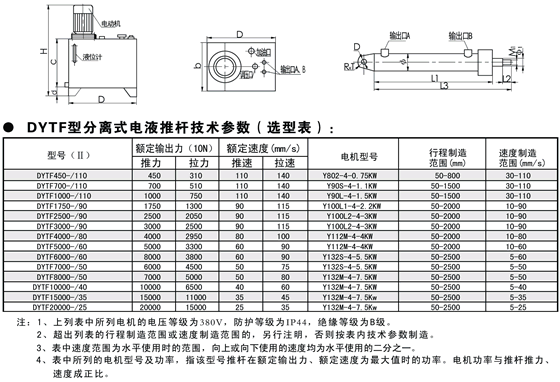- DYTP型平行式電液推桿是一種集機(jī)、電、液為一體的液壓驅(qū)動(dòng)機(jī)械手,適用于需要往復(fù)推拉直線(或往復(fù)旋轉(zhuǎn)一定角度)運(yùn)動(dòng),也可用于需要上升、下降或夾緊工作物的場(chǎng)所,并可實(shí)現(xiàn)遠(yuǎn)距離危險(xiǎn)地區(qū)的集中或自動(dòng)控制。已廣泛應(yīng)用于冶金、礦山、電力、煤炭、機(jī)械、交通、糧食、化工、水泥、水利、建材、運(yùn)輸?shù)炔块T,是一種通用的動(dòng)力源。DYTP型平行式電液推桿是一種機(jī)、電、液一體化的新型柔性傳動(dòng)機(jī)構(gòu),它以執(zhí)行機(jī)構(gòu)(油缸)、控制機(jī)構(gòu)(液壓控制閥組)和動(dòng)力源(油泵電機(jī)等到)組成。根據(jù)現(xiàn)場(chǎng)安裝空間及用戶使用情況電液推桿可有多種結(jié)構(gòu)形式(具體見(jiàn)電液推桿外形尺寸圖,也可根據(jù)用戶要求定制樣式)。電動(dòng)機(jī)通過(guò)正反轉(zhuǎn)驅(qū)動(dòng)雙向液壓泵正反輸出壓力油,經(jīng)液壓控制閥送至油缸,也實(shí)現(xiàn)活塞桿的往復(fù)運(yùn)動(dòng)。液壓控制閥組主要由溢流閥,吸油單向閥,調(diào)速閥(用戶要求),液控單向閥(液壓鎖)等組成也可根據(jù)電液推桿的工作特性,設(shè)計(jì)不同功能的油路組合閥,滿足其工作要求。一般有推出自鎖,拉回自鎖和推拉均自鎖;運(yùn)行速度有可調(diào)速型,不可調(diào)速型;電液推桿工作角度有水平推,向上推(包括斜向上),向下推(包括斜向下)等幾種。電液推桿主要有以下優(yōu)點(diǎn):(1)結(jié)構(gòu)緊湊、安裝方便、占據(jù)空間小、維護(hù)簡(jiǎn)單。(2)可帶負(fù)荷起動(dòng),具有過(guò)載保護(hù)功能。(3)回路設(shè)雙向液壓鎖,可停在規(guī)定行程范圍內(nèi)的任意位置并自鎖,且保持輸出力不變。(4)推拉力,速度(用戶要求)無(wú)級(jí)可調(diào),驅(qū)動(dòng)力范圍極廣。(5)因故斷電,推桿自鎖,避免發(fā)生事故。(6)采用全液壓傳動(dòng),動(dòng)作靈敏,運(yùn)行平穩(wěn),能有效緩沖外來(lái)沖擊力,行程控制精確(≥0.5mm)(7)機(jī)電液一體化全封閉結(jié)構(gòu),工作油路循環(huán)于無(wú)壓的封閉鋼筒里,體積小,不滲油,在惡劣的工作環(huán)境下,不吸塵,不進(jìn)水,內(nèi)部不銹蝕,使用壽命長(zhǎng)。DYTP型平行式電液推桿是我公司成立前針對(duì)國(guó)內(nèi)中,大推力檔電動(dòng)拉桿產(chǎn)品空白,而顧客又有需求的情況下于1988年起率先自主開(kāi)發(fā)并獨(dú)家生產(chǎn)的系列產(chǎn)品,是我公司多種電動(dòng)推拉桿系列產(chǎn)品之一。該產(chǎn)品已在首鋼,包鋼等多家大鋼鐵企業(yè)推廣應(yīng)用,也可用于其他需要大推,拉力的場(chǎng)合。其使用條件為環(huán)境溫度-15℃-60℃,相對(duì)濕度≤85%。DYTP型平行式電液推桿驅(qū)動(dòng)電機(jī),減速器,滑動(dòng)螺旋傳動(dòng)機(jī)構(gòu)等主要部分組成。內(nèi)部設(shè)有彈簧緩沖機(jī)構(gòu)及超載保護(hù)裝置,可保證產(chǎn)品安全,可靠地運(yùn)行。DYTP型平行式電液推桿的性能參數(shù),外形及安裝尺寸符合《Q/320211AKA01-2000電動(dòng)推拉桿》企業(yè)標(biāo)準(zhǔn)的規(guī)定,其具體數(shù)據(jù)表列如下。