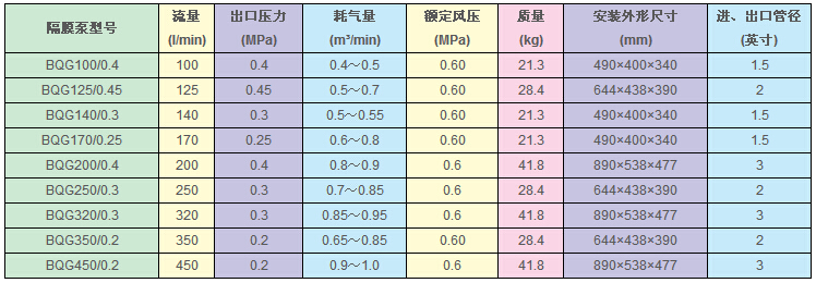 4、揚程、流量可通過氣閥開度實現(xiàn)無級調(diào)節(jié)(氣壓調(diào)節(jié)在1-7bar之間)